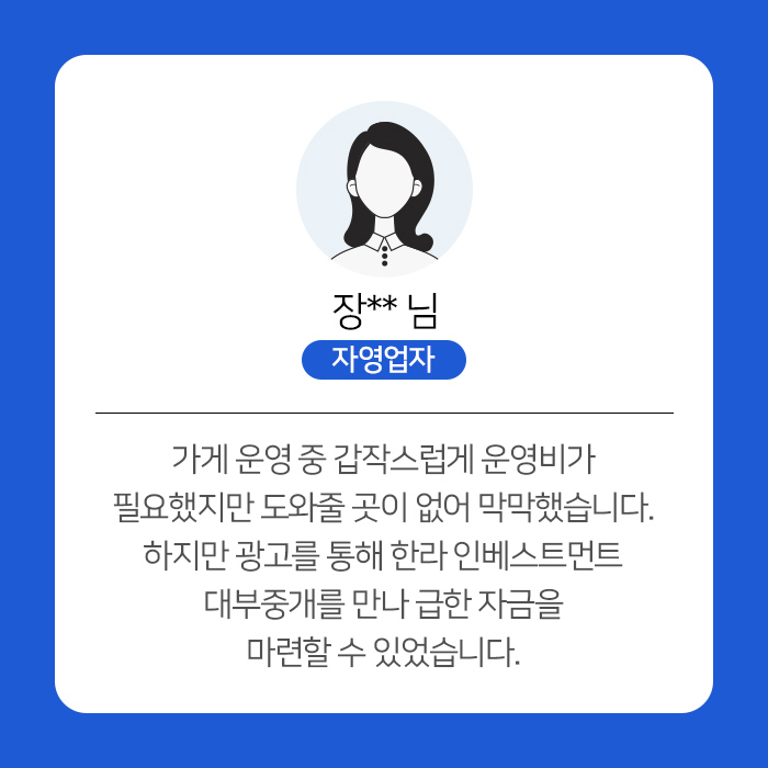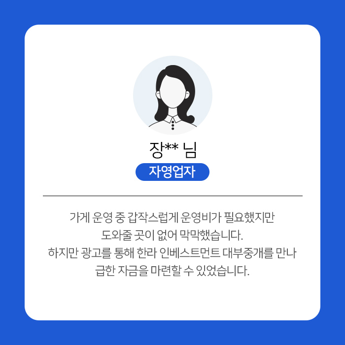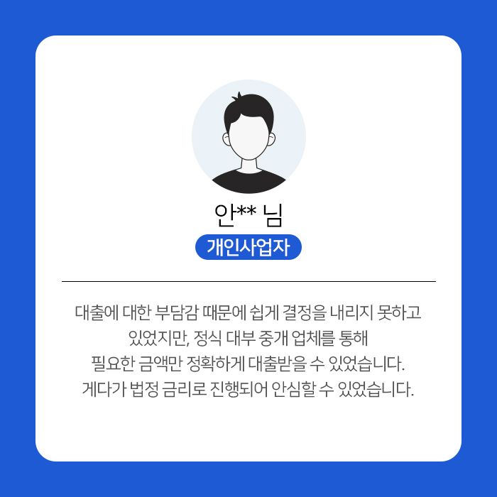 기대출이나 연체와 상관없이 법정 금리로,매출만 확인되면 전국 어디서든안전금리로 대출 가능합니다.