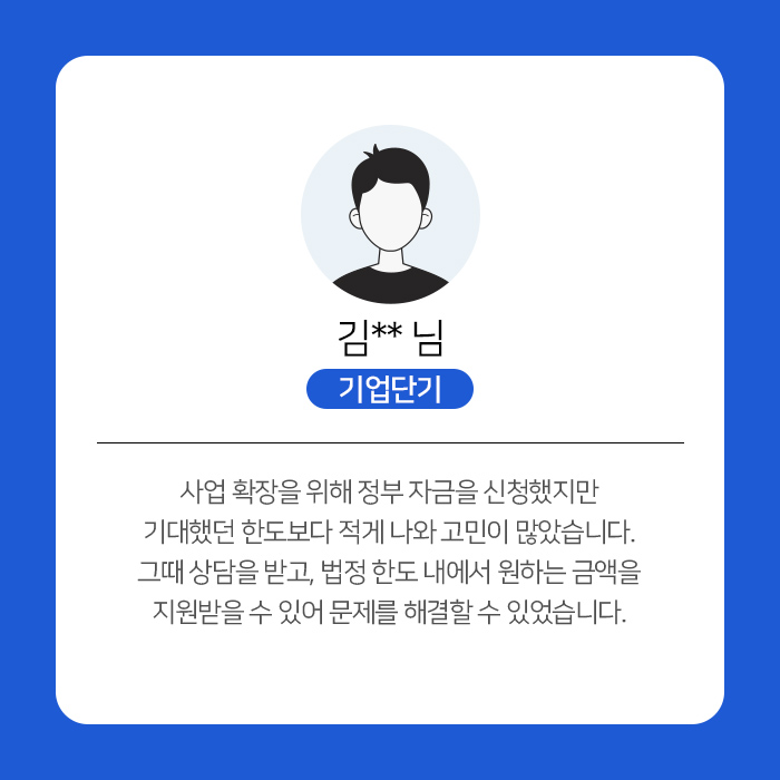 사업 종목에 따라 대출 상품이 달라지며,500만원부터 5억원까지 적격 금리로당일 승인 가능합니다.