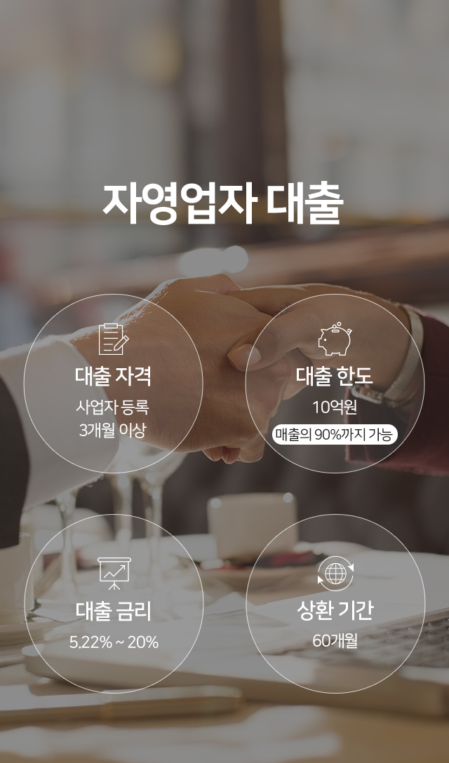 사업 종목에 따라 대출 상품이 달라지며,500만원부터 5억원까지 적격 금리로당일 승인 가능합니다.